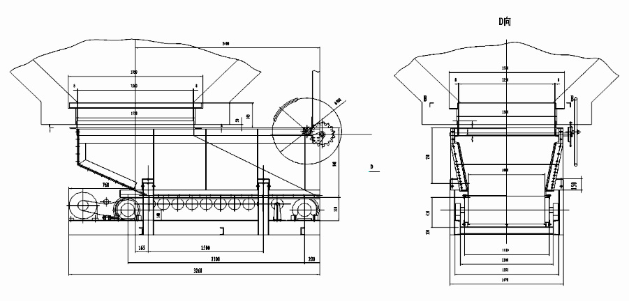 甲帶給料機有連接段、導料槽、閘門機構、驅動電機、傳動滾筒、改向滾筒、環(huán)形膠帶和甲帶等組成的,環(huán)形膠帶被甲帶包裹,環(huán)形膠帶主要起牽引作用,甲帶是承載運輸物料的主要部件,這樣甲帶有效的保護了環(huán)形膠帶不被堅硬物煤、雜物劃傷、撕裂的危險。驅動裝置由減速機經鏈輪帶動驅動滾筒;驅動裝置和甲帶給料裝置均安裝在托架上,并可調整位置;為減少摩擦力,給料機導料槽橫截面為倒梯形。