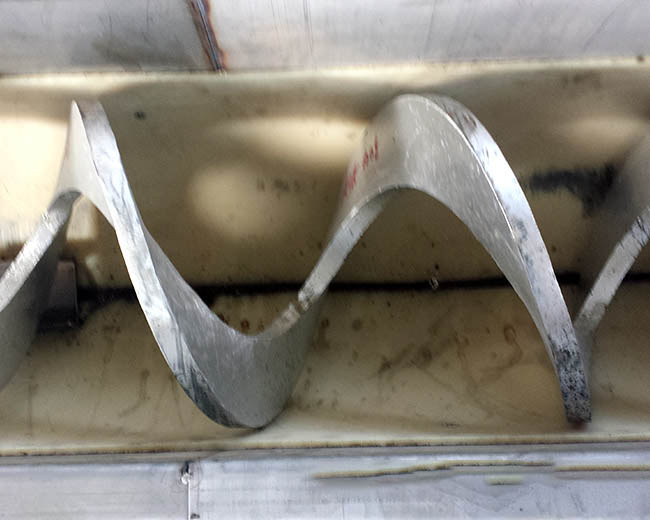 污泥輸送機是旋轉的螺旋葉片將物料推移而進行螺旋輸送機輸送,使物料不與螺旋輸送機葉片一起旋轉的力是物料自身重量和螺旋輸送機機殼對物料的摩擦阻力。螺旋輸送機旋轉軸上焊的螺旋葉片,葉片的面型根據(jù)輸送物料的不同有實體面型、帶式面型、葉片面型等型式。螺旋輸送機的螺旋軸在物料運動方向的終端有止推軸承以隨物料給螺旋的軸向反力,在機長較長時,應加中間吊掛軸承。